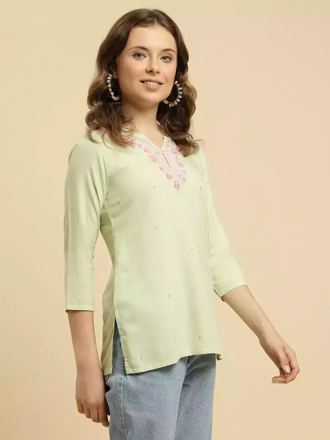 Look ethereal in this Aari work Kurti, freshly crafted in the lightness and comfy feel of cotton.