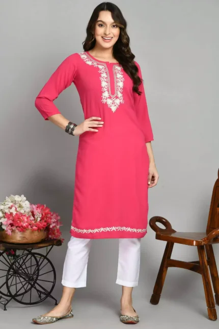 Pink Silk Work Kurti