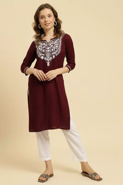 Maroon Colored Multi Embroidered Kurti