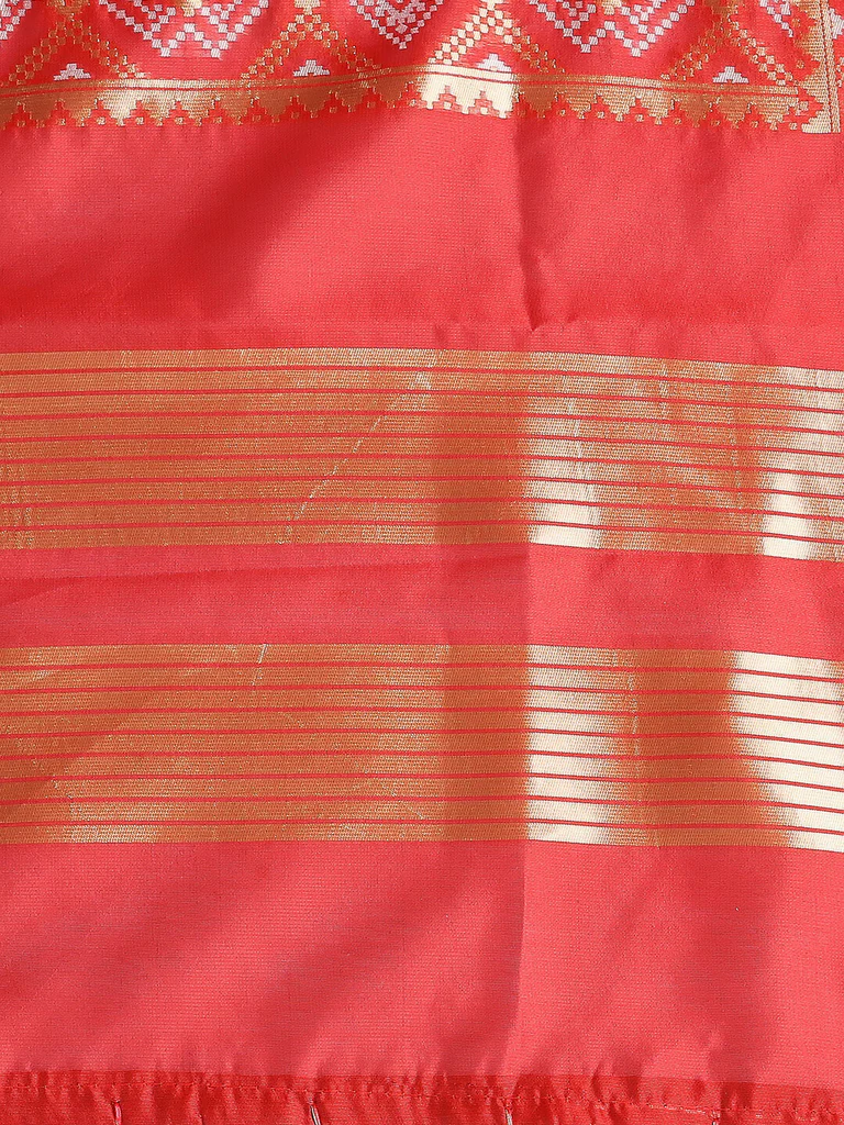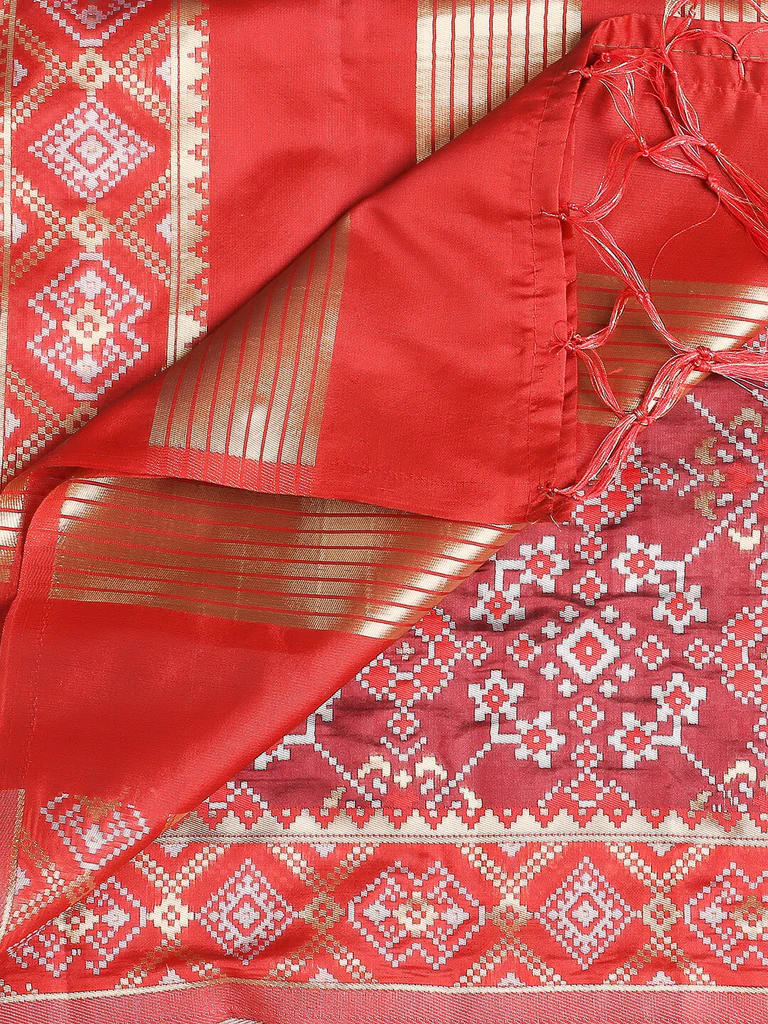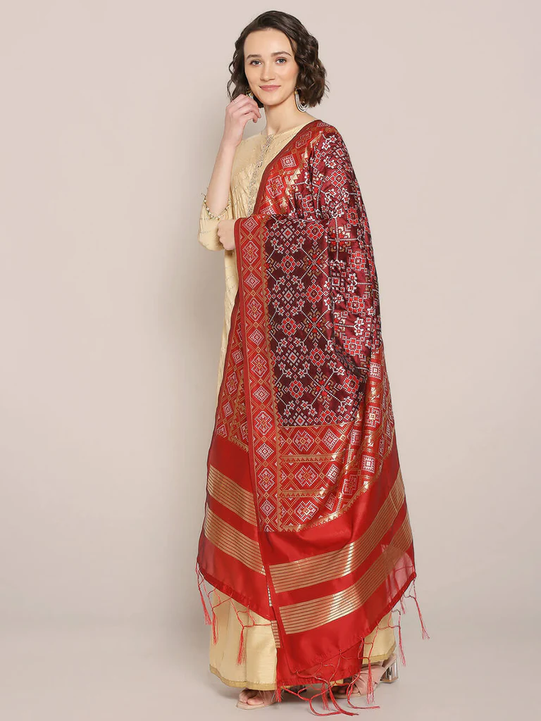 Add a touch of elegance to your wardrobe with this exquisite piece of beautiful Banarasi Silk Dupatta. Swathed with elegant Patola-style weaving all over, this classic stunner is a must in your ethnic collection.