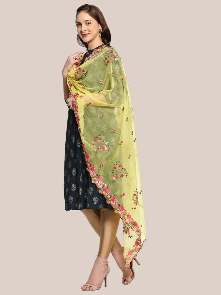 Let this season see you welcome the beauty of this organza dupatta to your ethnic fashion mix, showcasing eye some elegance and gorgeous grace! This alluring creation is adorned with beautiful multicolor floral embroidery all over. It will definitely give your feminine charm a hint of subdued elegance.