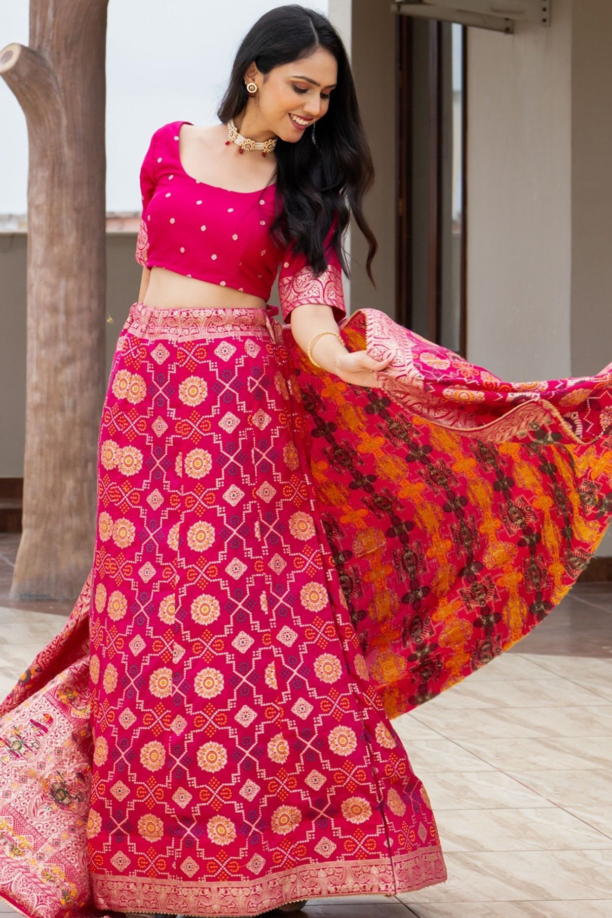 Rani Pink Silk Blend Lehenga Set