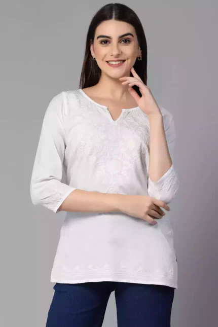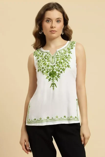 Look ethereal in this Aari work Kurti, freshly crafted in the lightness and comfy feel of cotton.